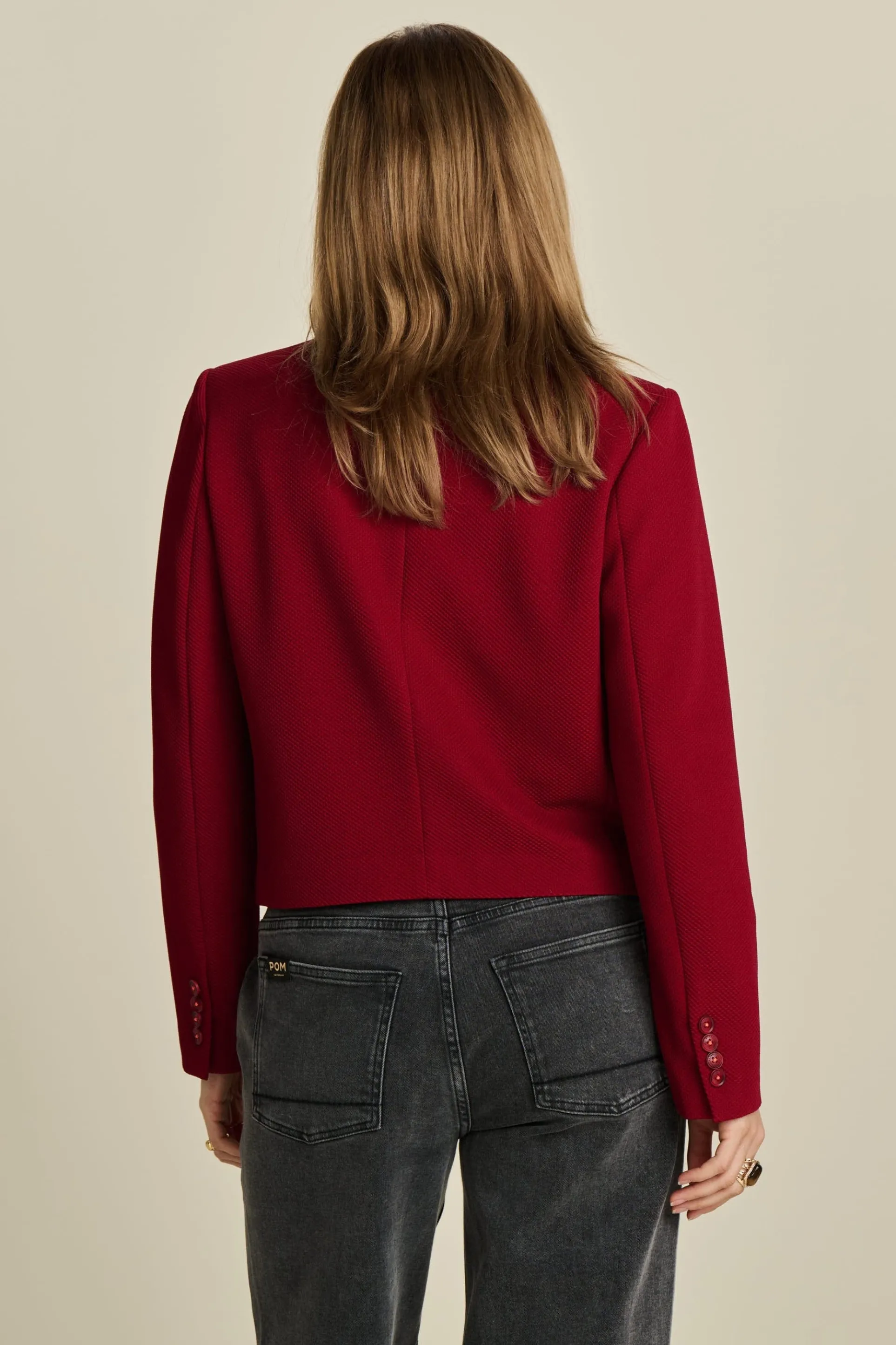 Ontdek deze rode blazer, gemaakt van ons bekende piqué stof. Het jasje heeft een korte pasvorm voor een moderne uitstraling. Combineer de blazer met de bijpassende flared of wide-leg broek, gemaakt van duurzamere materialen.