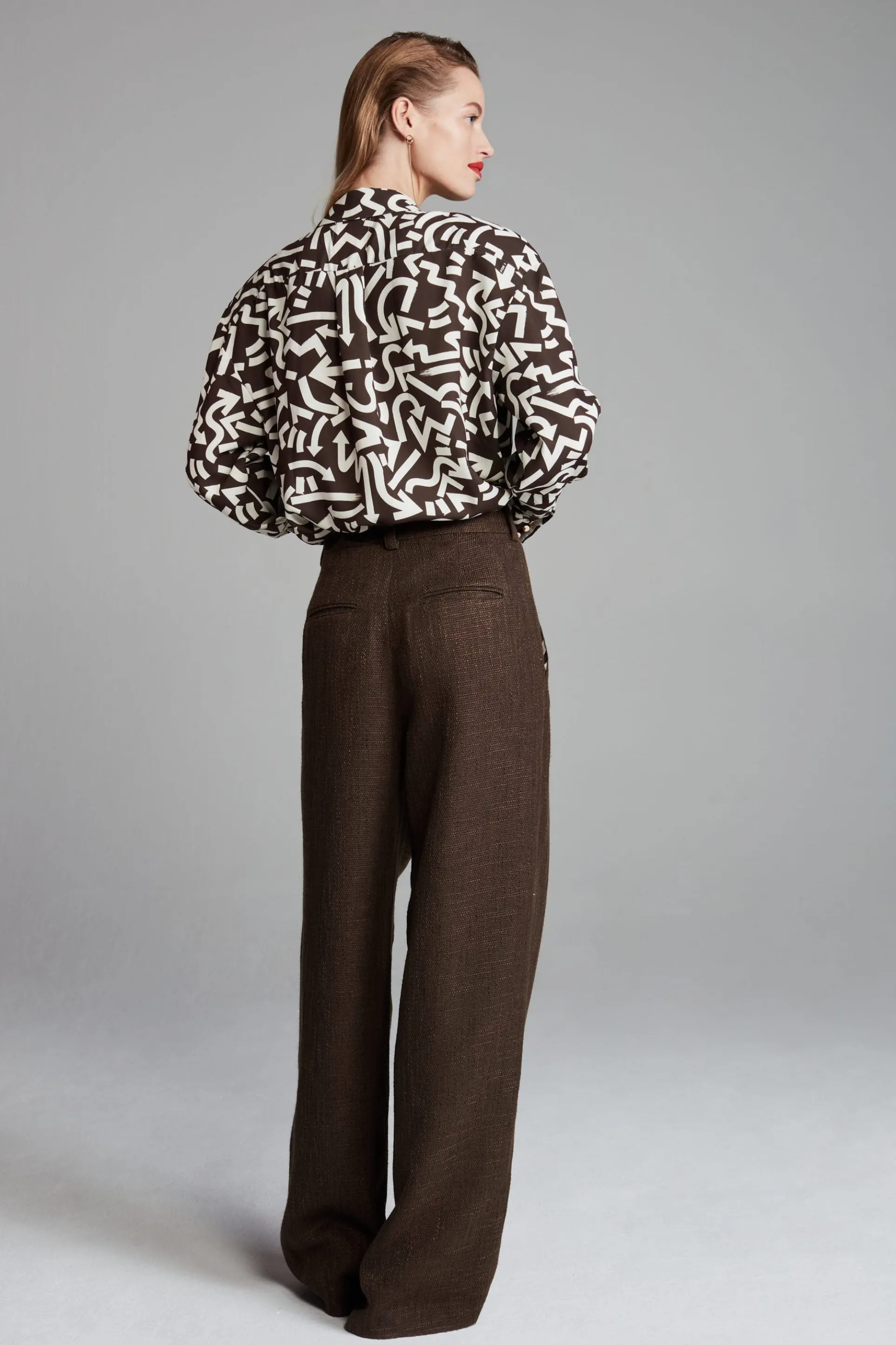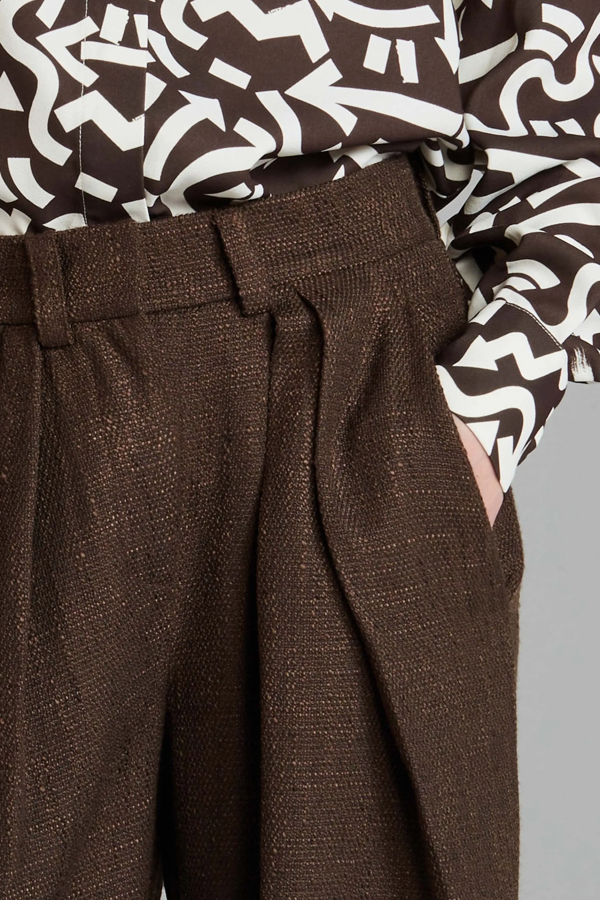 Deze bruine broek isontworpen in samenwerking met modeontwerper Claes Iversen. De broek heeft ballonvormige broekspijpen en heeft een lichte structuur in de pantalon. Combineer met de bijpassende blazer voor de complete look.