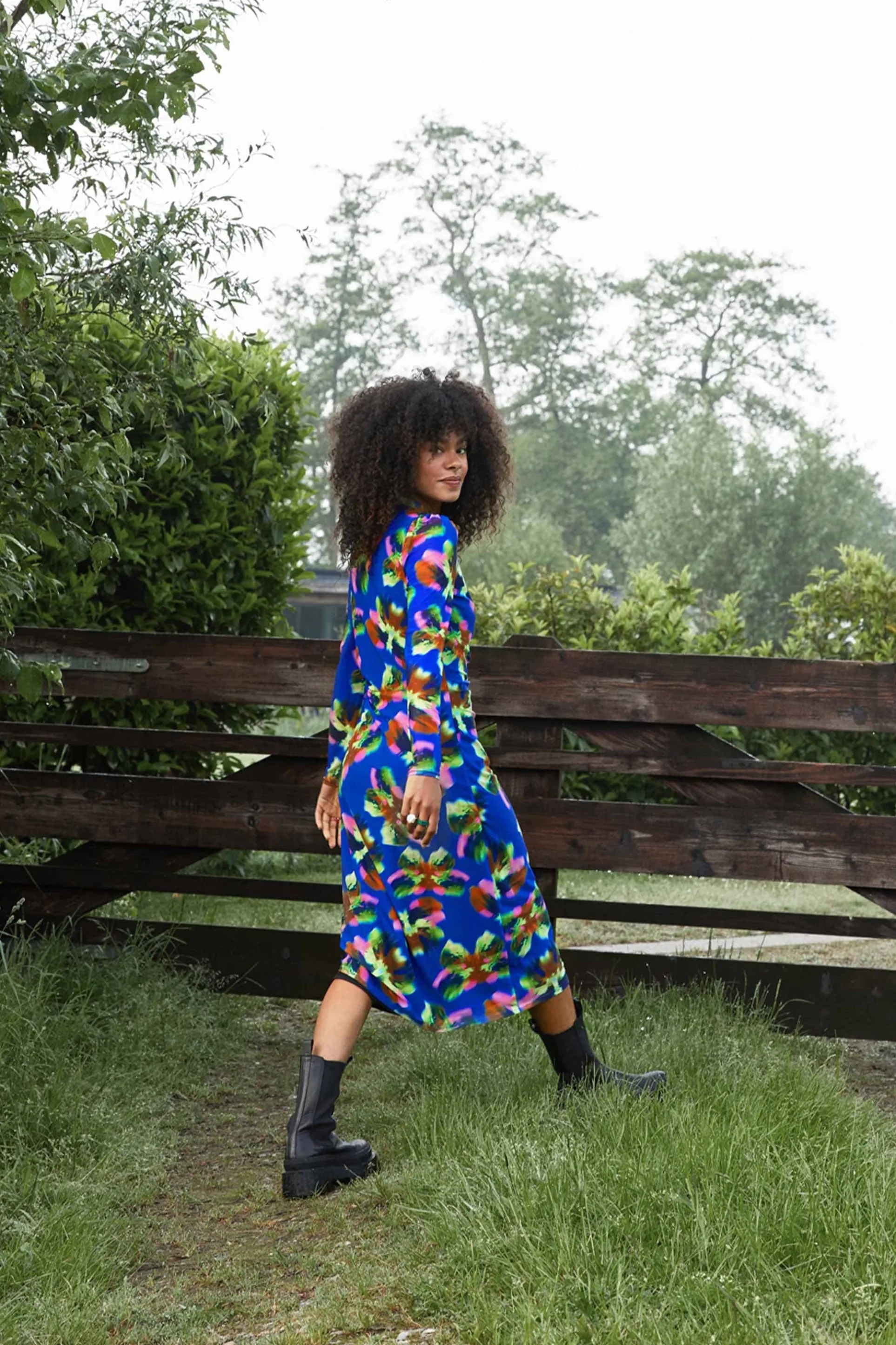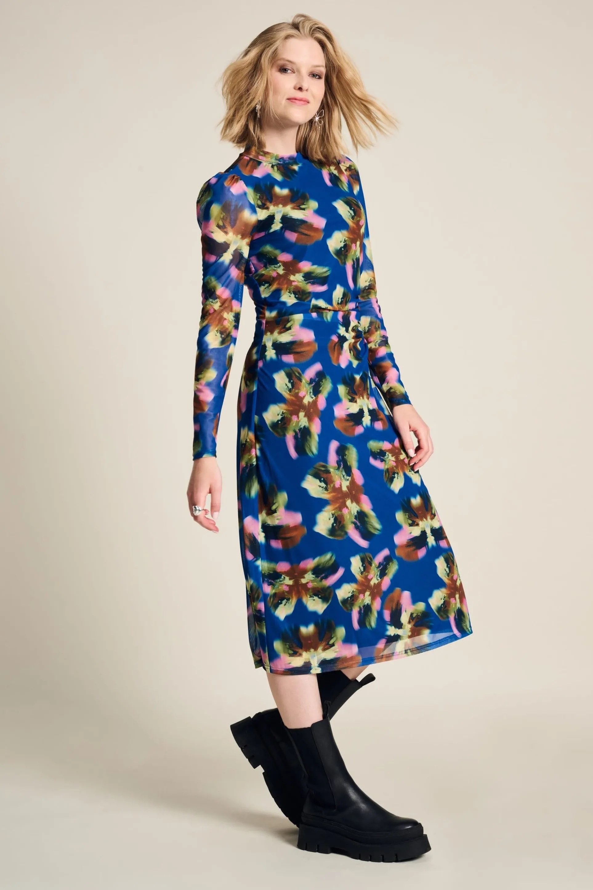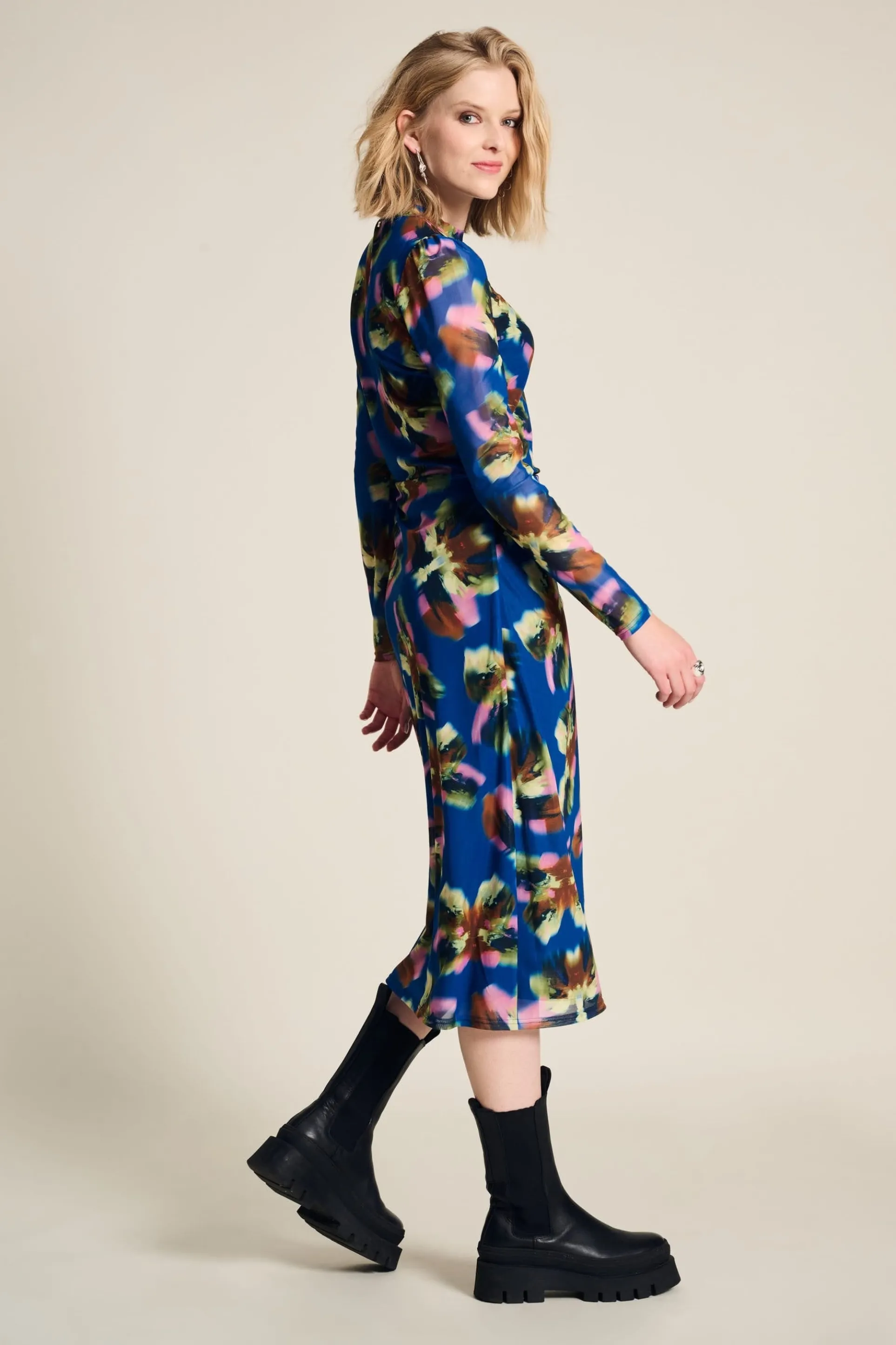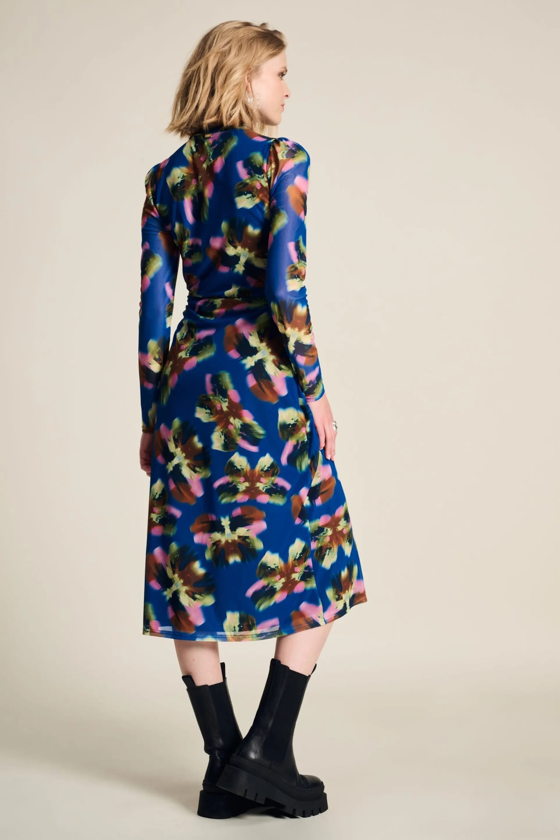 Pasvorm: De jurk heeft een getailleerde fit, aansluitende mouwen en valt op de kuit. Het model op de foto is 177 cm lang en draagt maat 36.