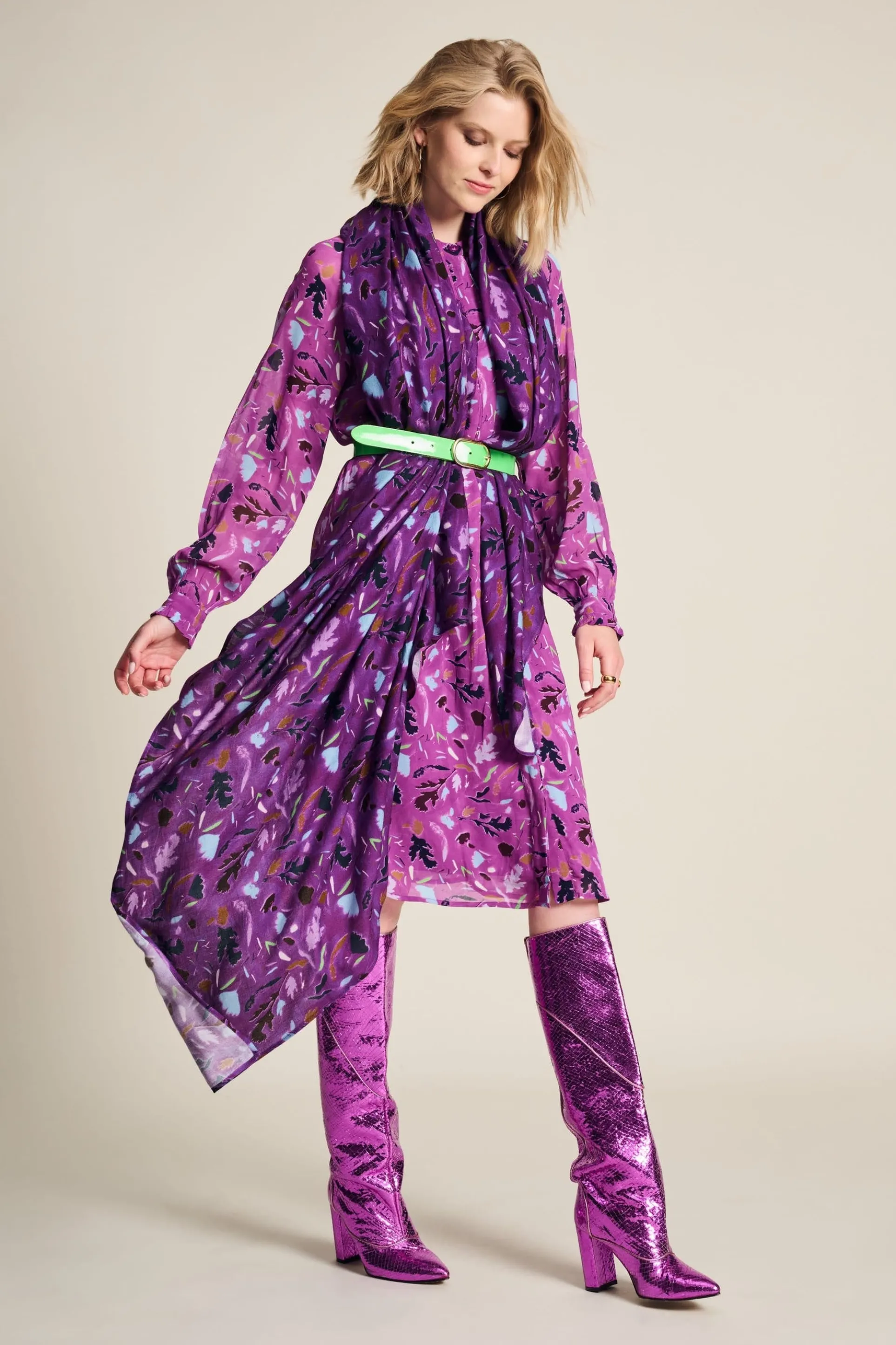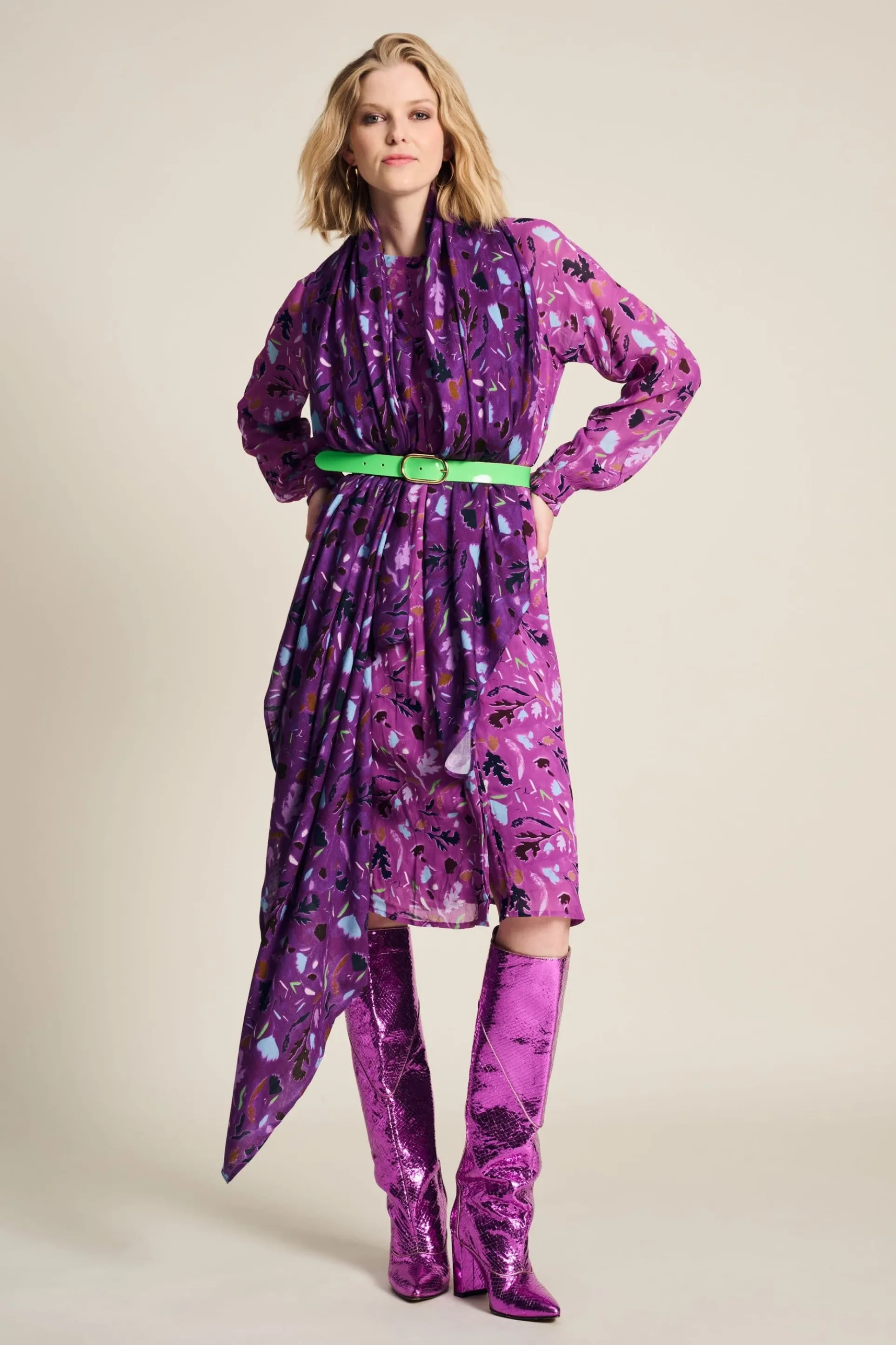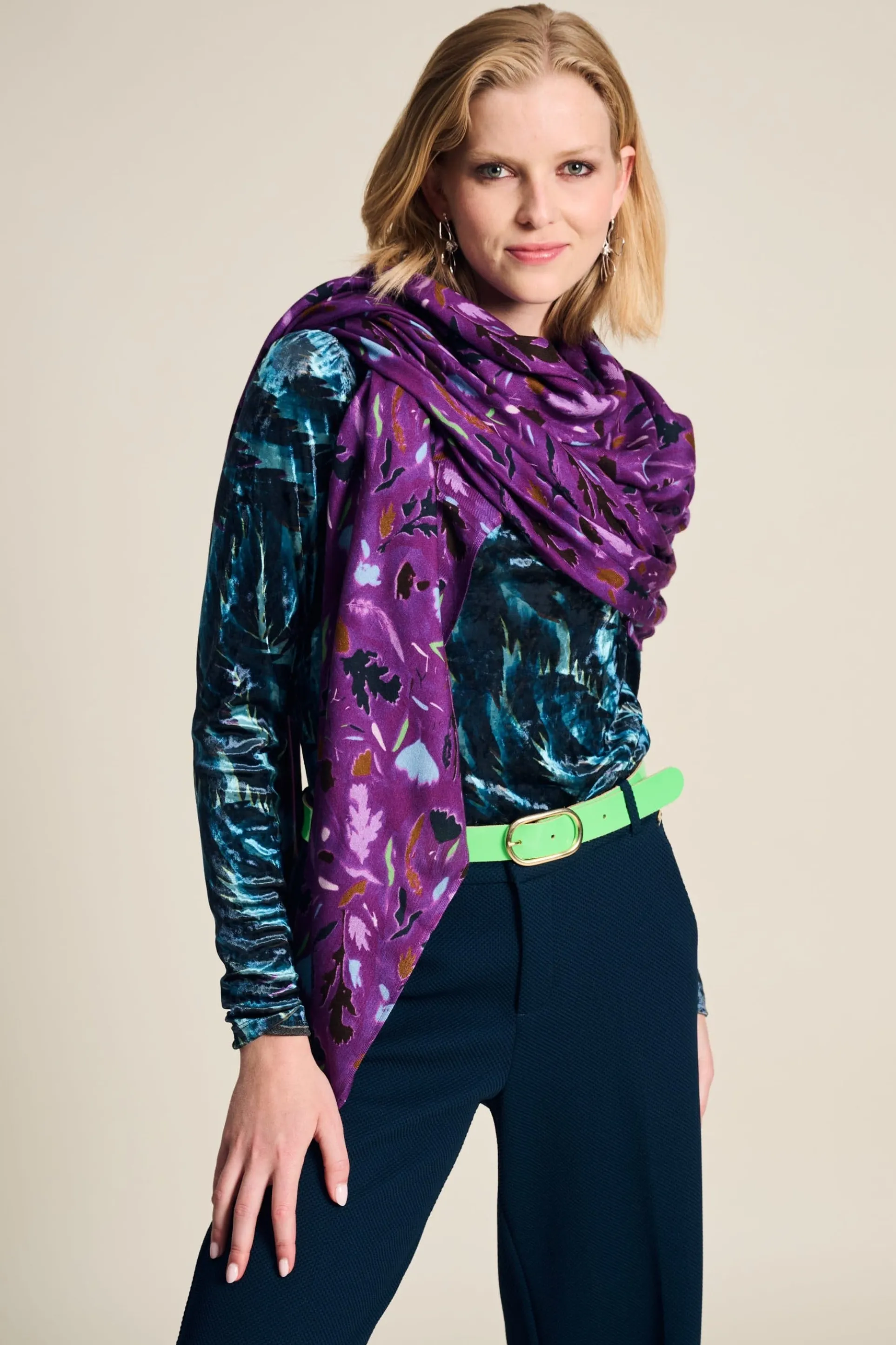 Ontdek onze paarse sjaal, met prachtig verenpatroon geïnspireerd op de vleugels van vogels. De stof is more sustainable door de birla gecertificeerde Modal.